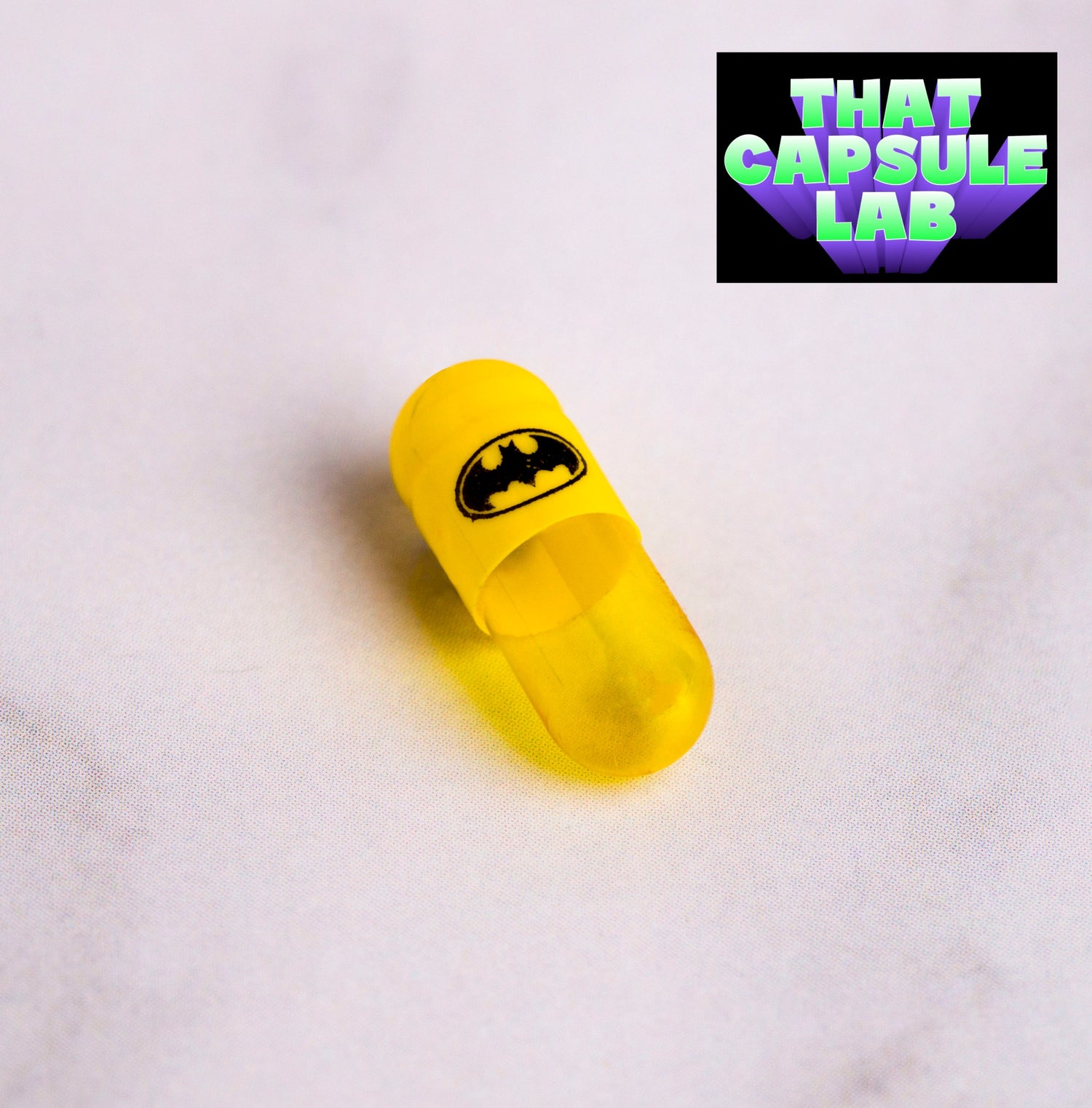 Size 4 Yellow Bats and Size 3 Green Alien Gelatin Capsules.